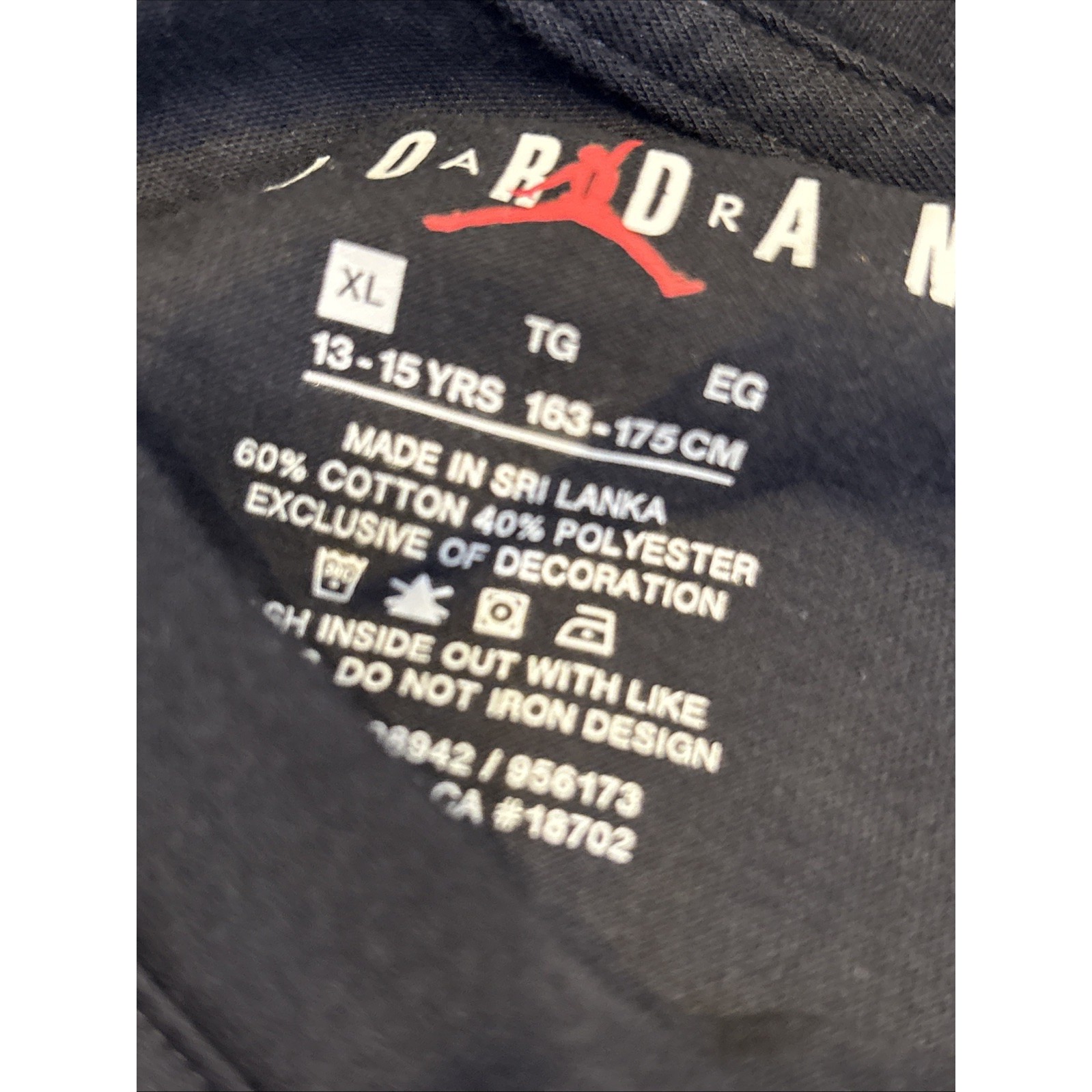 This Boys' XL AIR JORDAN Graphic Print Short Sleeve T-Shirt in Black is a stylish and comfortable option for young boys. Made from a cotton blend fabric, this regular fit shirt features a crew neckline and pullover closure. The shirt is decorated with a logo accent and is suitable for various occasions such as travel, activewear, and casual wear. With its lightweight design and tagless feature, this shirt is perfect for all seasons and can be machine washed for easy care. The classic Jordan character and Nike Air Jordan theme make it a popular choice for young fans of the brand.