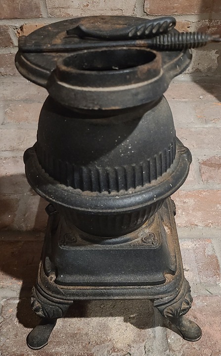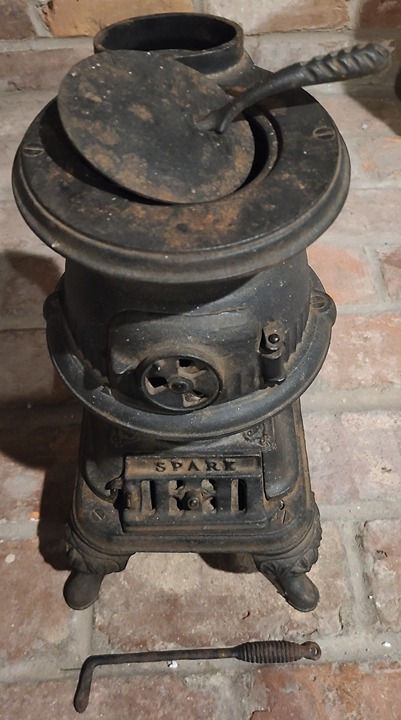 Antique cast iron stove was a salesman piece comes with all pieces attached nothing chipped or broken, comes with poker and lid lifter all moving parts work perfectly and everything intact, rare to be 100% all complete with all doors and accessories open to reasonable offers thanks for looking