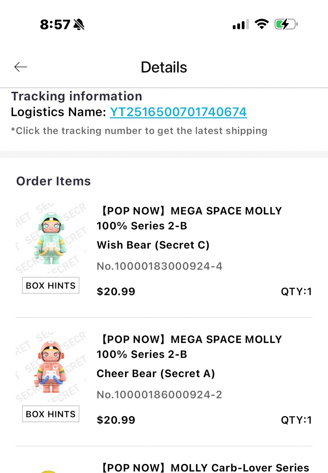 AUTHENTIC < WISH BEAR > POP MART Mega Space MOLLY 100% Series 2-B