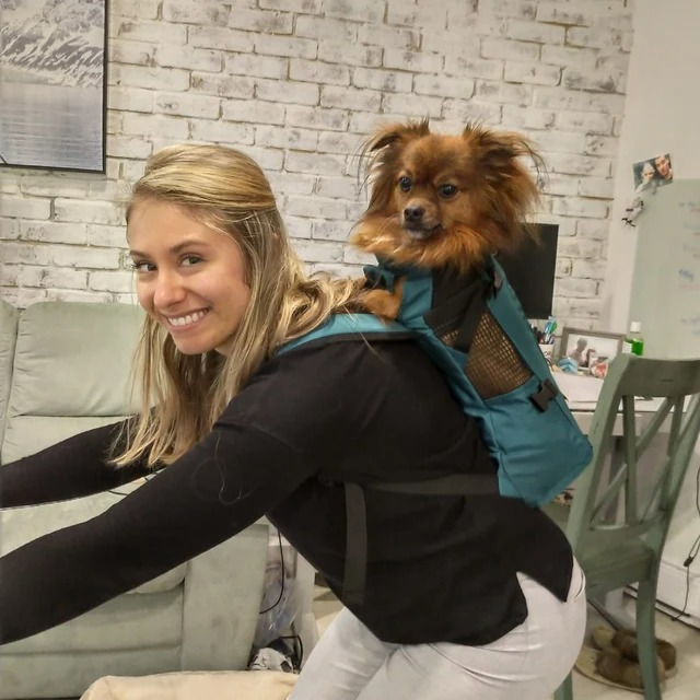 This carrier fits most comfortably on dog owners with a small to medium build.