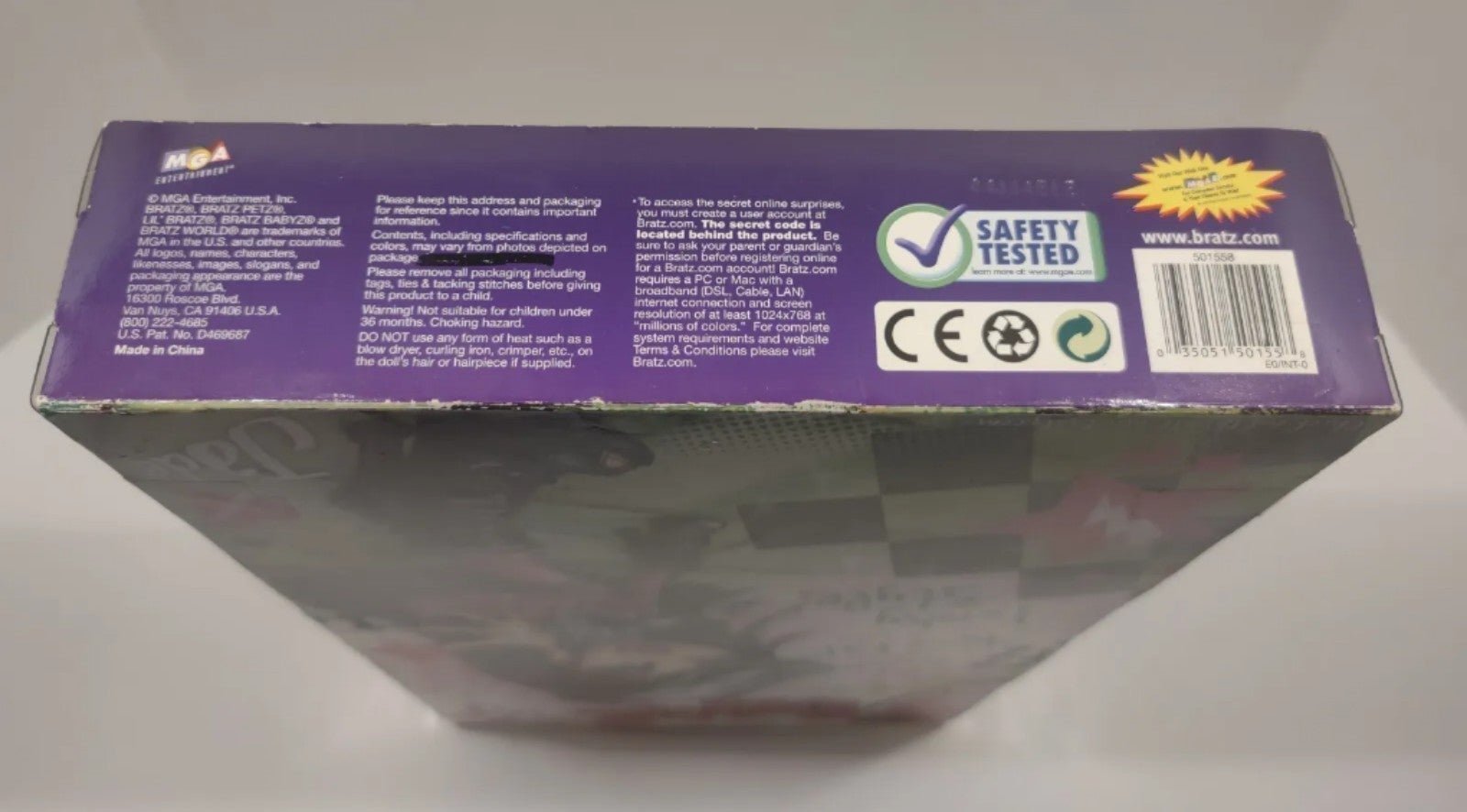 Bratz Party Jade 10th Anniversary Released On 1010/10/10. New in the box. Never removed from the box. Released on 10/10/10. Factory sealed tape all around the box. The cardboard back of the box is in excellent condition. Purple handle attached to the top. Plastic store rack hanger intact and attached to the top of the box. 10th Anniversary sticker intact & attached on the front panel. There is a piece of plastic on the bottom of the box I think this fell off her hand. Last picture. Accessories and an extra outfit are shown in photos 7 and 8. This has been in storage for the last few years. There are a few spots and scratches on the plastic panels. They are hard to see but I want to be clear about the condition of the plastic panels. See all pictures as they are part of the description. Ask any questions before you buy. I am selling my Bratz collection. Sold as is. No returns. PRICE FIRM! Cross posted. Thanks!