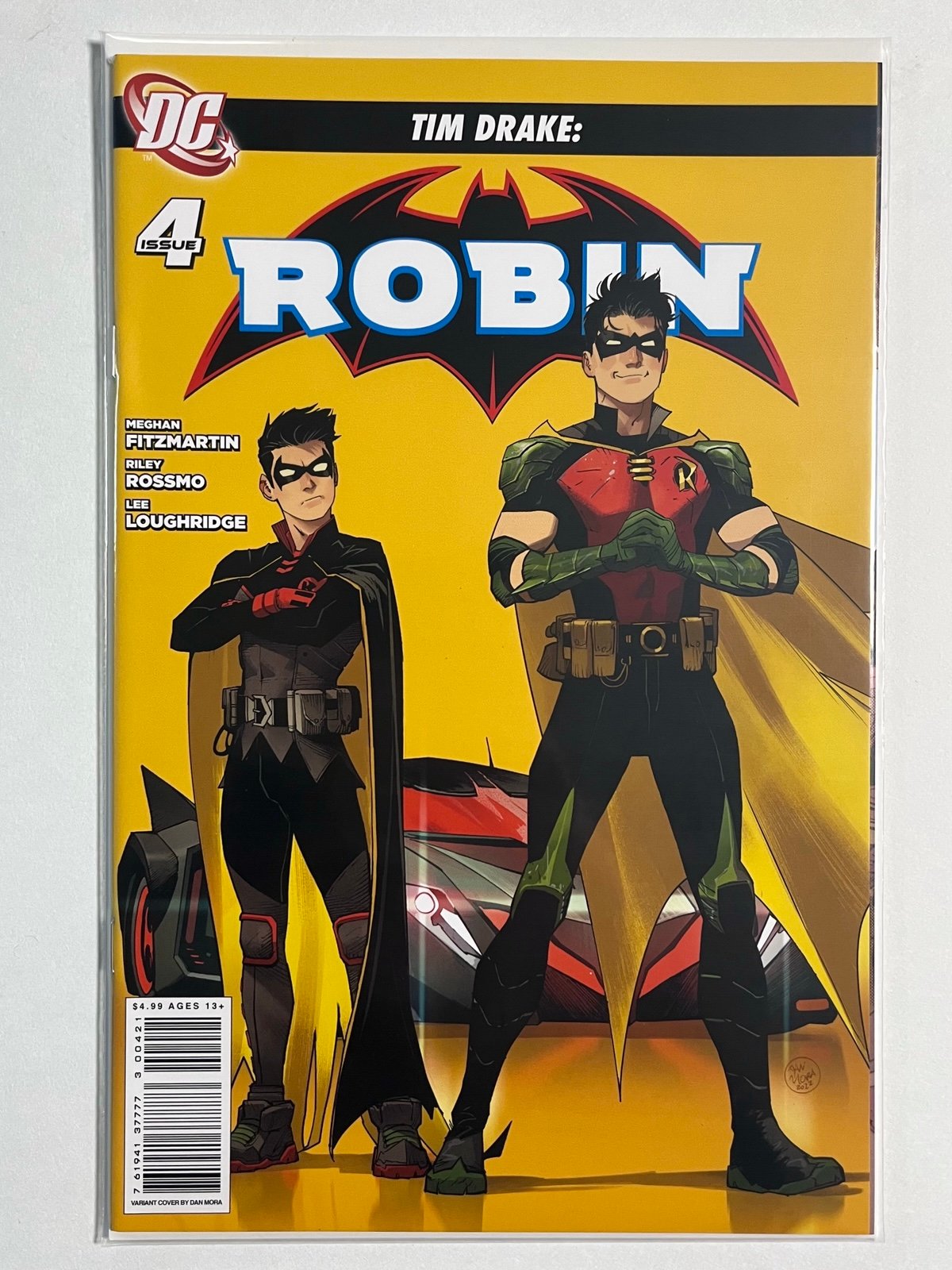 Tim Drake: Robin Dan Mora homage variant cover featuring Damian Wayne Robin in great condition. There is small nick on the top left corner on as pictured Previously kept in a comic box in a smoke and pet free home out of direct sunlight! All items are well taken care of, currently trying to downsize my collection.