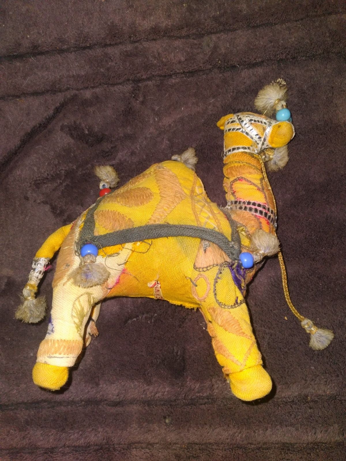 Vintage Small Camel, Cotton Stuffed, Emborderied and Decorated with Small Mirrors, Beads and Real Camel Hair.