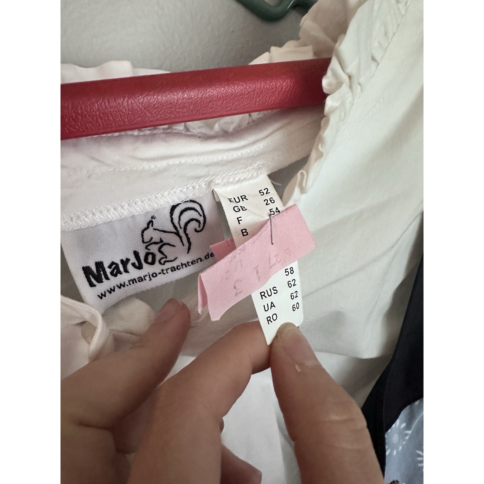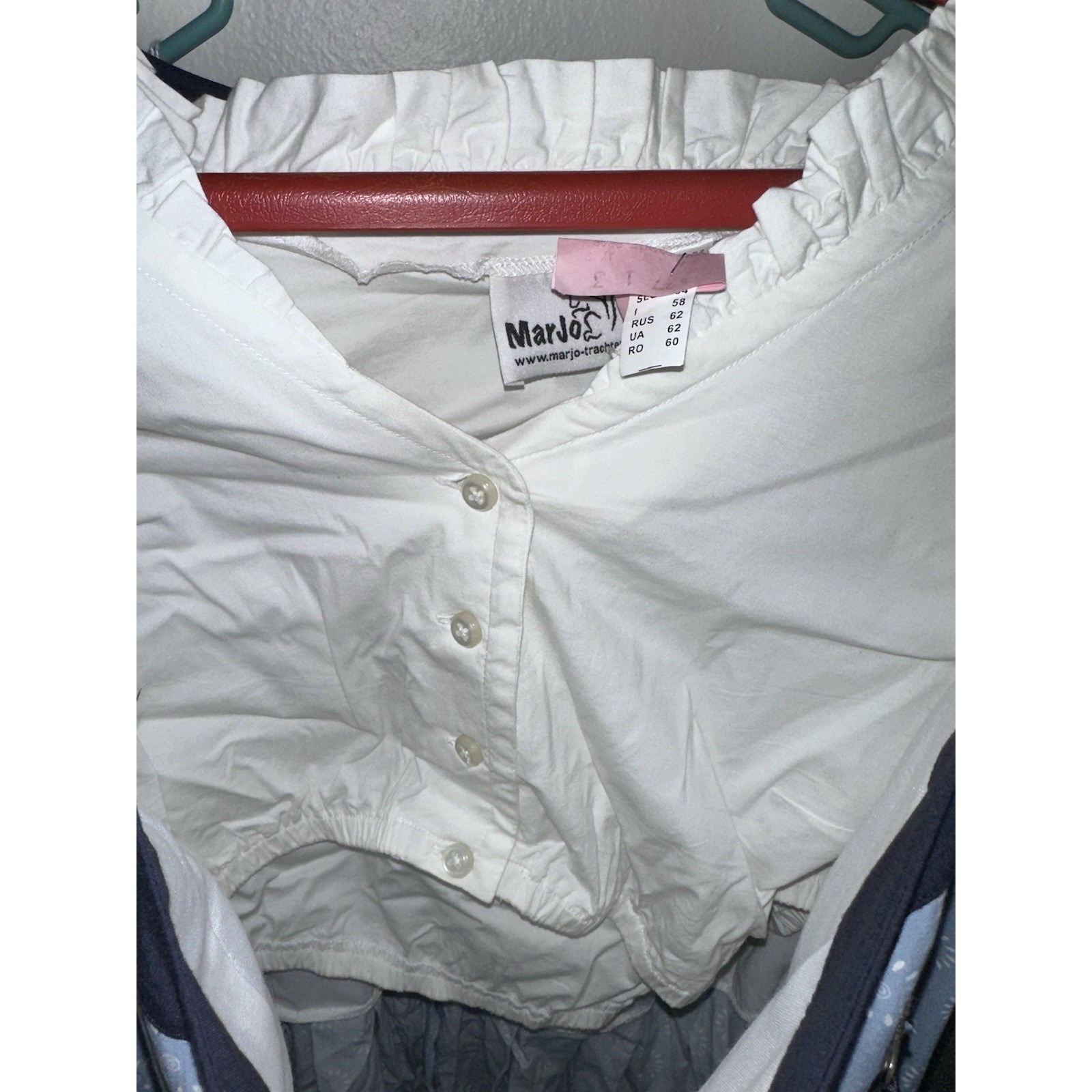 The Marjo Trachten German Blue Dirndl Dress with Apron in size 2XL is a traditional and charming piece of women's clothing from Germany. Made from cotton, this Prairie/Victorian, Cottagecore style dress features a rich blue color and comes with an apron, perfect for adding a touch of authenticity to a special outfit. Designed by Marjo Trachten, this dress showcases the craftsmanship and attention to detail that are characteristic of German traditional clothing.