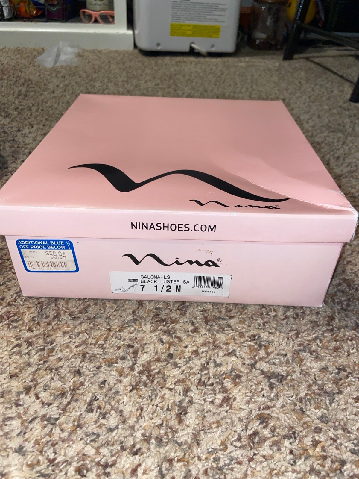Brand new never worn NinaShoes, short heel with zip up backing around the silver buckle. Competition Leather size. 7 1/2 in women’s super cute perfect heels for special occasions does come with original box a little dented but no wear or tear on the actual heels just the box.