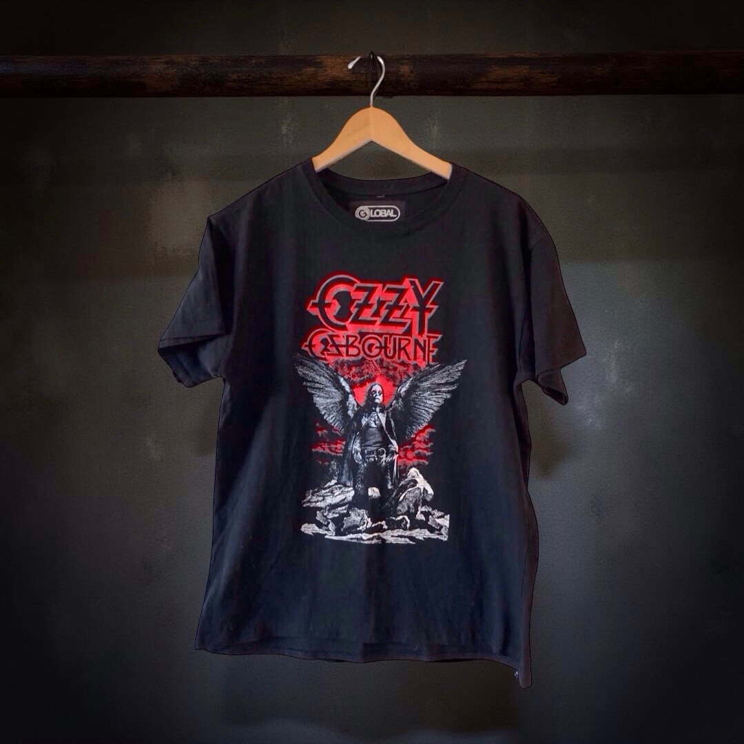 Turn up the volume on your wardrobe with this striking Ozzy Osbourne tee, featuring a dramatic winged figure graphic and bold red lettering. The design channels classic metal energy — perfect for fans, collectors, or anyone craving that vintage concert tee aesthetic.