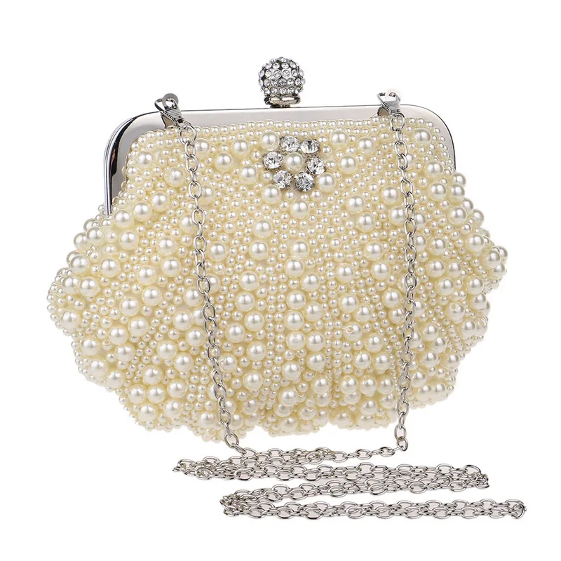 SEKUSA Beded women evening bags diamonds shell lady small day clutches party dinner wedding bridal hollow pearl handbags purse