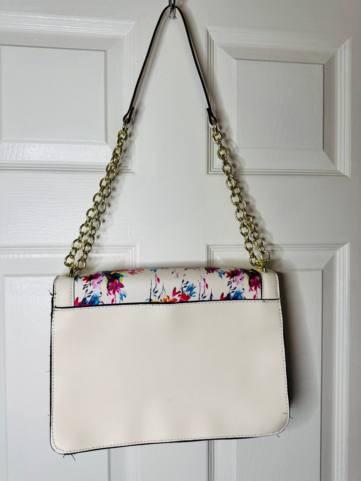 Stylish floral design with vibrant colors. Features a chic chain strap. Perfect for any occasion!