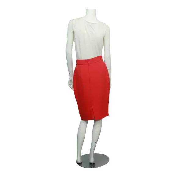 Thierry Mugler Red Knee Length Back Vent Viscose Blend Classy Pencil SkirtWith classy style, back zipper and knee length for a fantastically defined silhouette this adorable vintage red skirt by Thierry Mugler can be worn many ways and can support any style. Fashion t-shirt and sneakers for the ultimate sport chic look or high pumps and red lipstick for a sexy evening look. Color: RedMaterial: 50% acetate, 50% viscoseApprox. measurements: Height: 65cm / Waist: 36cm Size no size tagsCondition: Very good preowned conditioncodes IZA